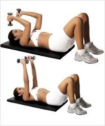 Exercício supino: Exercício para enrijecer os músculos peitorais e ajudar a eliminar as gordurinhas que saem do sutiã. Deitada de barriga para cima. Flexione os braços na altura dos ombros e estenda-os para cima. Faça 3 séries de 15 repetições. Ou pode-se fazer conforme a imagem a direita.